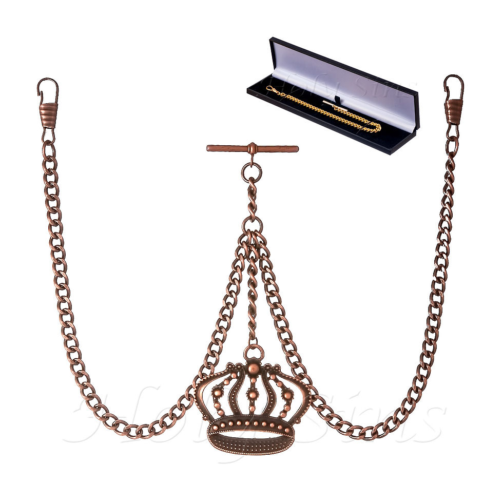 COPPER COLOUR DOUBLE ALBERT POCKET FOB CHAIN WITH CROWN