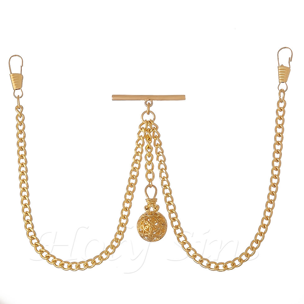 GOLD COLOUR SINGLE ALBERT POCKET WATCH CHAIN WITH HOLLOW PENDANT