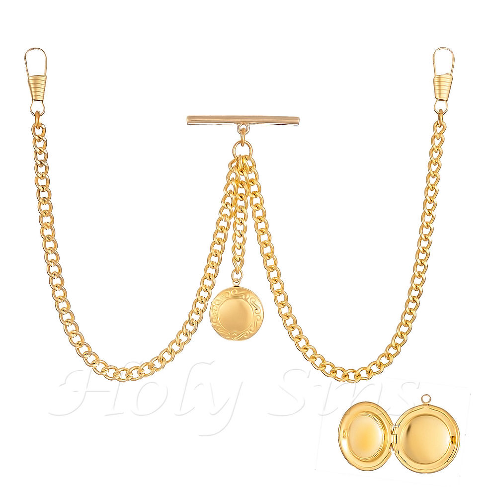 Gold Colour Single Double Link Albert Pocket Watch Chain With Locket Pendant